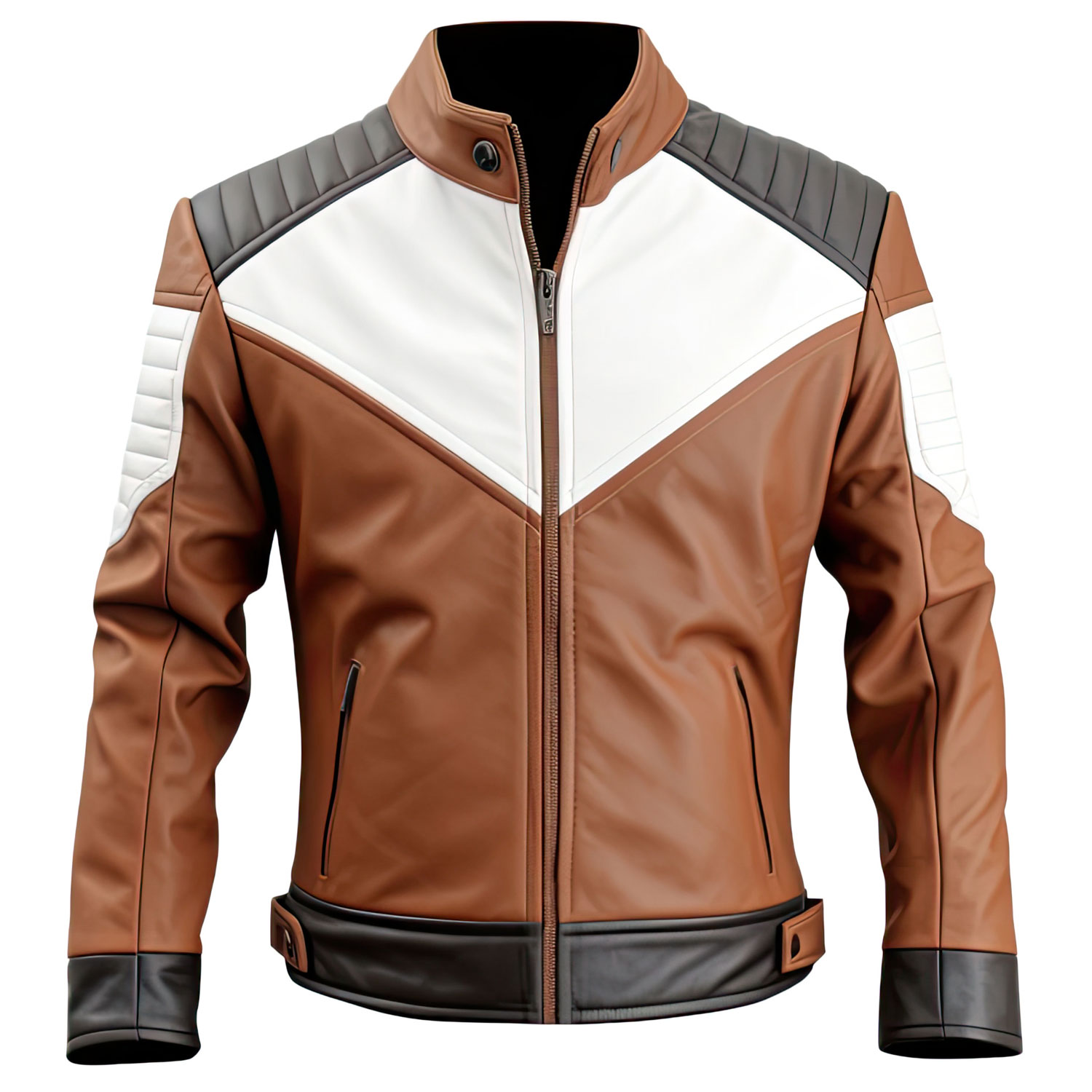 The Men’s Brown White Genuine Sheepskin Stand Collar Moto Biker Classy Casual Smooth Rider Quilted Shoulders Leather Jacket is a testament to timeless style and premium craftsmanship. This exquisite piece is made from top-tier genuine sheepskin leather, ensuring both luxury and longevity. Its stand collar and quilted shoulders and sleeves infuse the jacket with an air of sophistication and a hint of rugged charm, perfect for the modern rider. The front YKK zipper closure and slanted pockets combine functionality with sleek design, making this jacket as practical as it is stylish. Whether you’re cruising on your motorcycle or enjoying a casual day out, this leather jacket, with its unique brown and white color scheme, is designed to make a statement while providing comfort and durability.