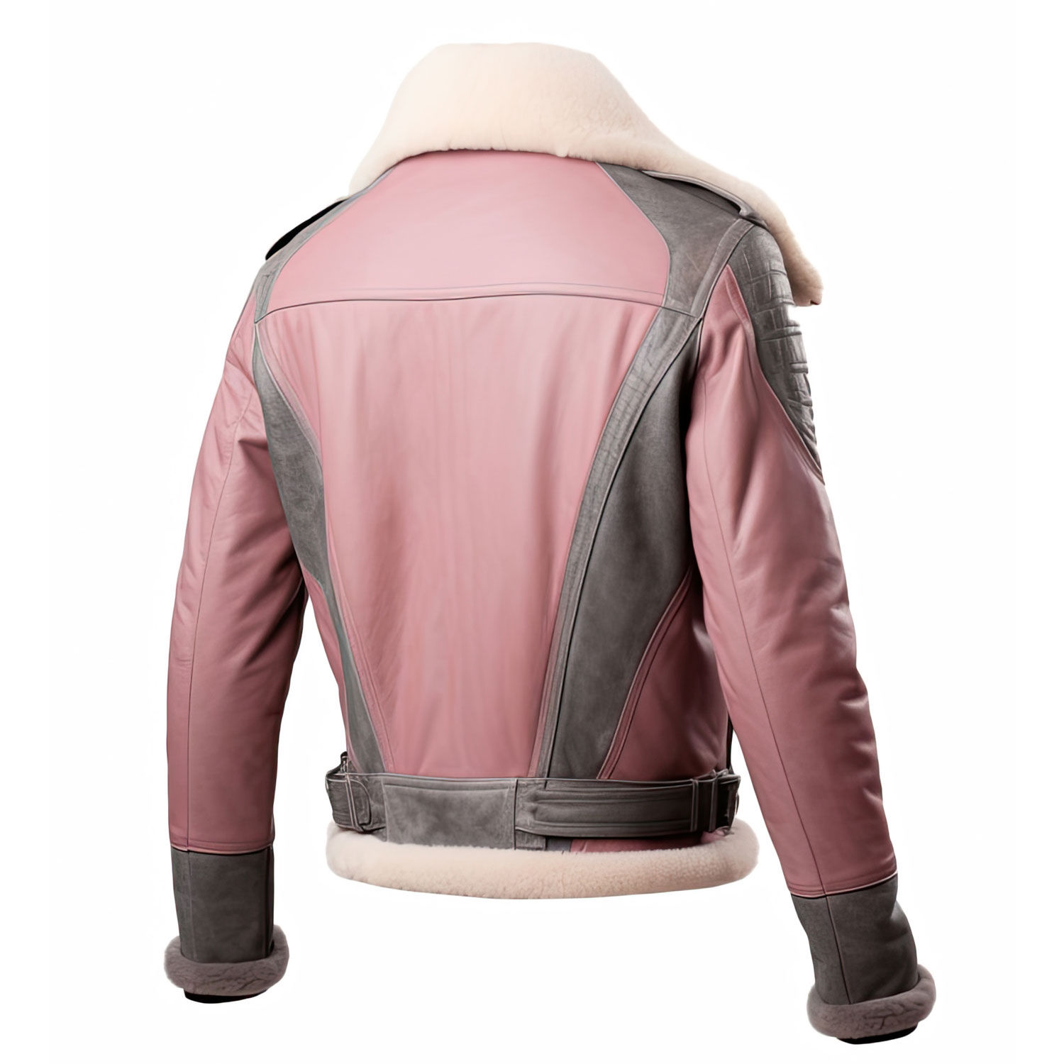 • Premium Sheepskin With Shearling: Crafted From Genuine Sheepskin Leather, Featuring A Luxurious Sherpa Shearling Faux Fur Collar, Cuffs, And Bottom Hem In Pink And Grey.
