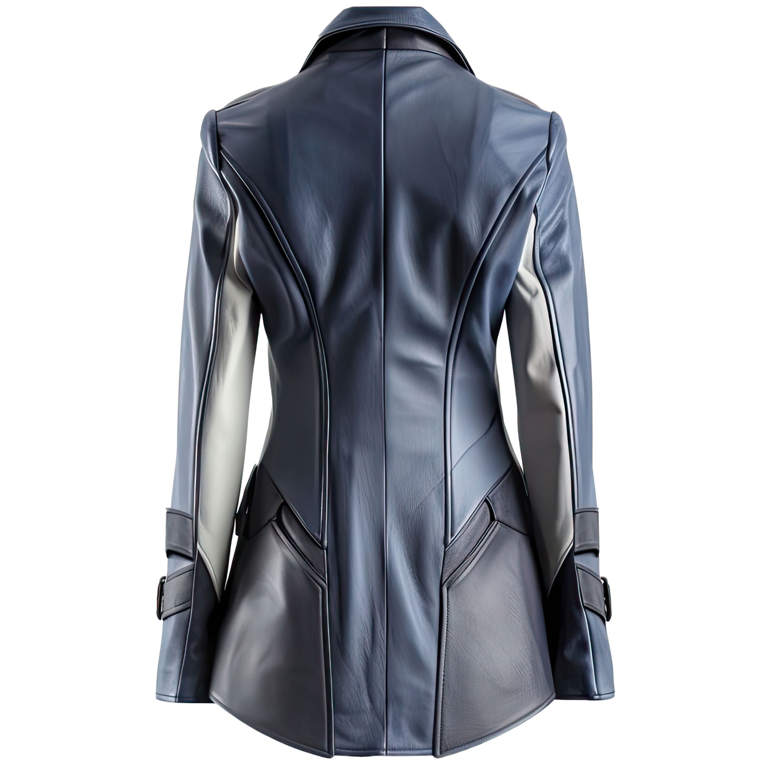 Introducing the Women’s Sapphire Blue Grey Genuine Sheepskin Formal Soft Outfit Lapel Collar Warm Winter Mid-Length Lightweight Leather Blazer. This exquisite piece redefines winter formal wear, blending luxurious warmth with refined style. Made from high-quality genuine sheepskin. The classic notch lapel collar and mid-length cut make it versatile enough for various formal and casual settings, ensuring you always look your best. Despite its warm construction, the blazer remains lightweight and slim-fitting, offering a sleek and comfortable fit that flatters the figure. The addition of stylish detailing on the front and back elevates the blazer’s aesthetic, making it a statement piece that’s both unique and timeless.